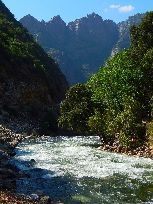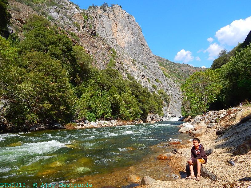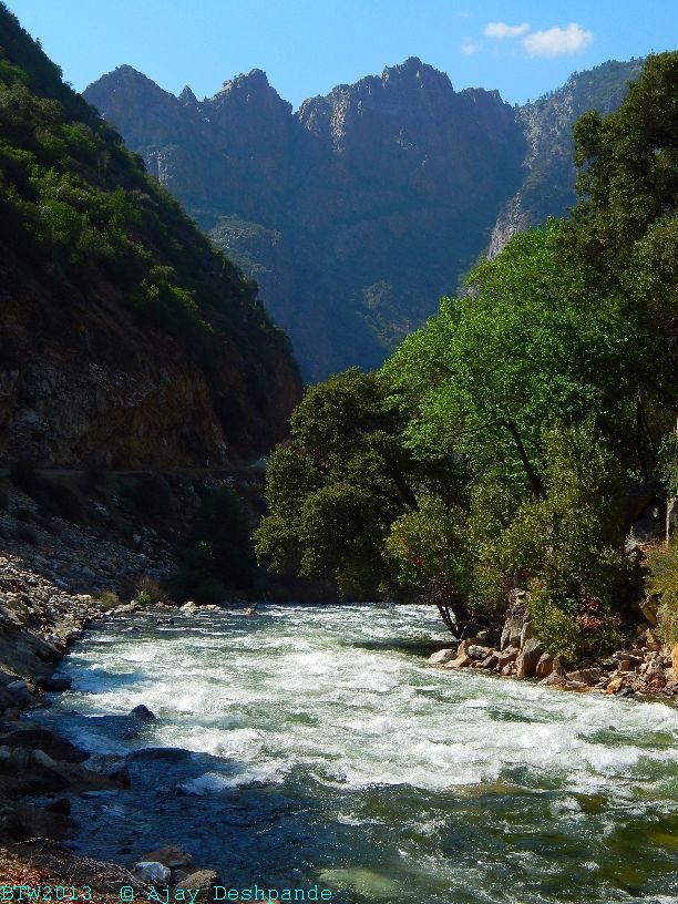 Kings Canyon is a smaller version of the Grand Canyon. It is carved by many rivers - the primary one being the Kings river. Since it is spring now, it was flowing and very turbulent. As it snakes around in the canyon, it creates a lot of roaring falls at many places. The road through the canyon itself is very curvy and and scenic to drive. The falls along the way make awesome scenic spots. One of the falls that we drove and then hiked to was the Mist Falls. Route 180 terminates at this falls. After this hike we were back on the road heading back on route 180 in the other direction.