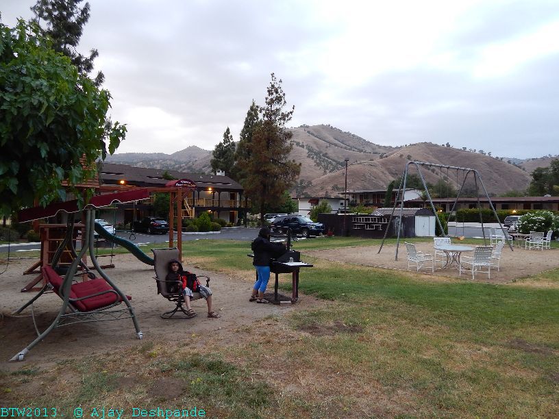 We drove down route 190 to a place called Three Rivers where we had booked a nice place called the Western Holiday lodge. This is run by a Bangladeshi couple. It has a nice play area, a picnic area and provides hot continental breakfast. What else one would expect in these remote places? We liked it so much that we stayed for another day (since the next day we were going back to Sequoia any way). We cooked dinner at the hotel, our rice cooker coming in very handy.