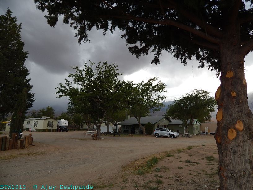 We found that the Olancha RV park had some great cabins. Although it did not look great from outside, inside it was excellent. Since we had reached early (and remember it does not get dark here until 8pm or so) we had some great time to play ball and cook our dinner. We cooked peas usal, moog sambar and rice. We thought the cabin was so remote that we would not get much to do there, but wait we have internet access even here!!! That was the last thing we expected here. Anyway, that marks the end of another great day.