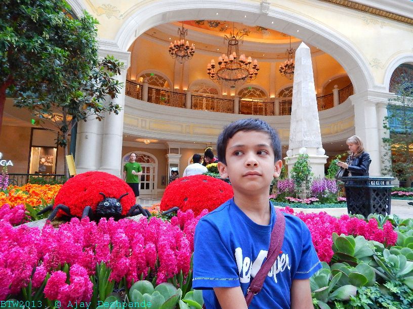 | Arnav looks at the colourful gardens in Bellagio casino |