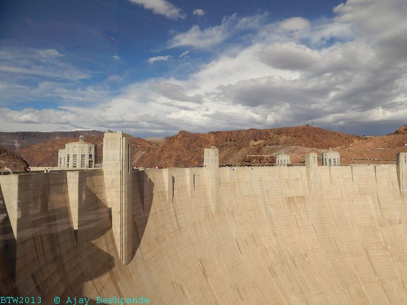 Hoover dam is one of the most inspirational engineering structures of the last century. It was built amidst the great american depression. It is built on the massive Colorado river. Colorado river was both a friend and a foe then - friend because it brought water to the deserts and enemy because it brought floods to destroy humanity. The dam was built to tame this river. One can read about what went in to build this dam online - suffice it to say that it took about 5000 workers working round the clock with only two holidays a year, working for five years to finish it. The dam was completed two years ahead of schedule (very unheard of in modern IT ruled worlds!). Its an exemplary structure still standing after 75 years. The electricity generated alone by it has more than paid for, the investment made into the dam.