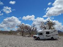 | A Recreational Vehicle on a lonely rest area in Nevada |