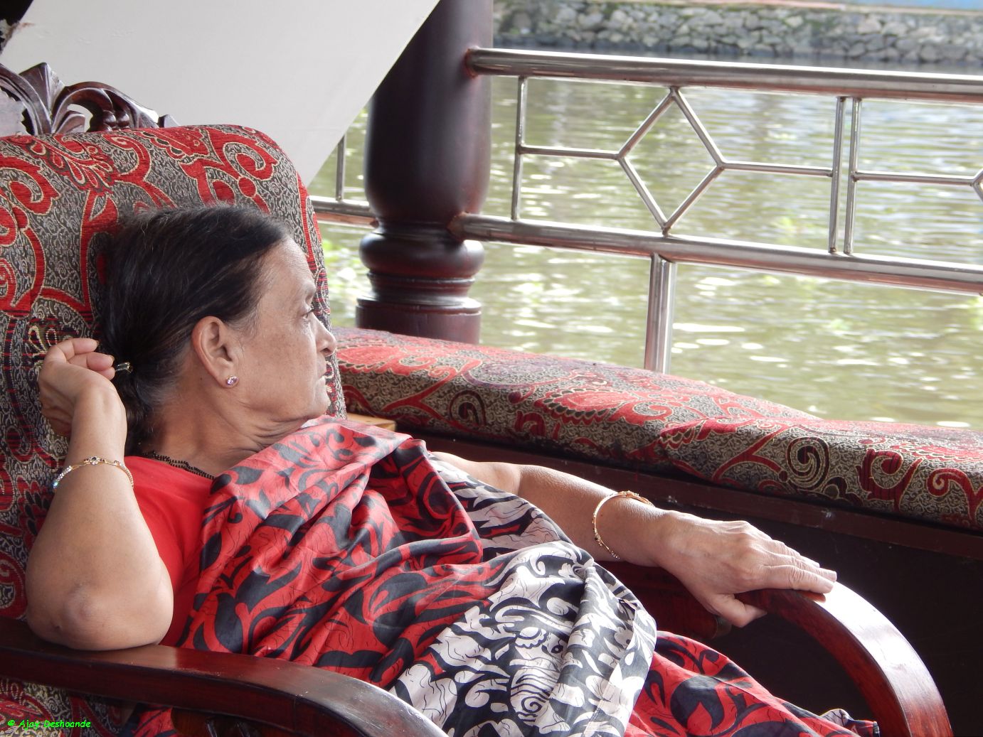 | Mummy relaxes as the houseboat slowly makes its way |