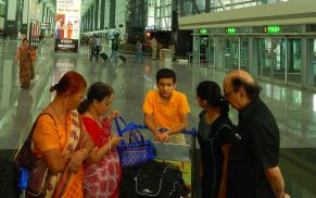 We get to the airport enterance and the guard asks all of us to show